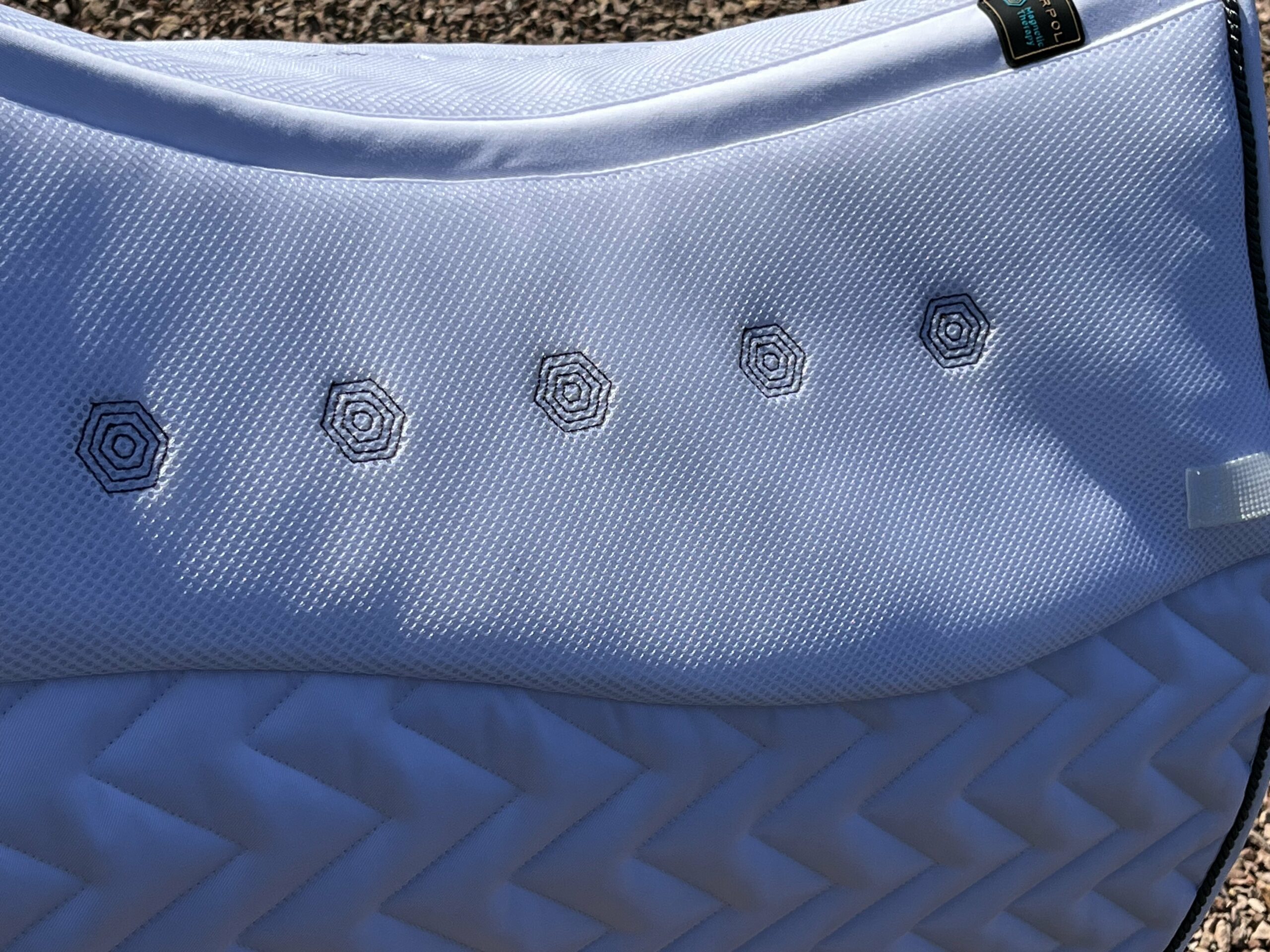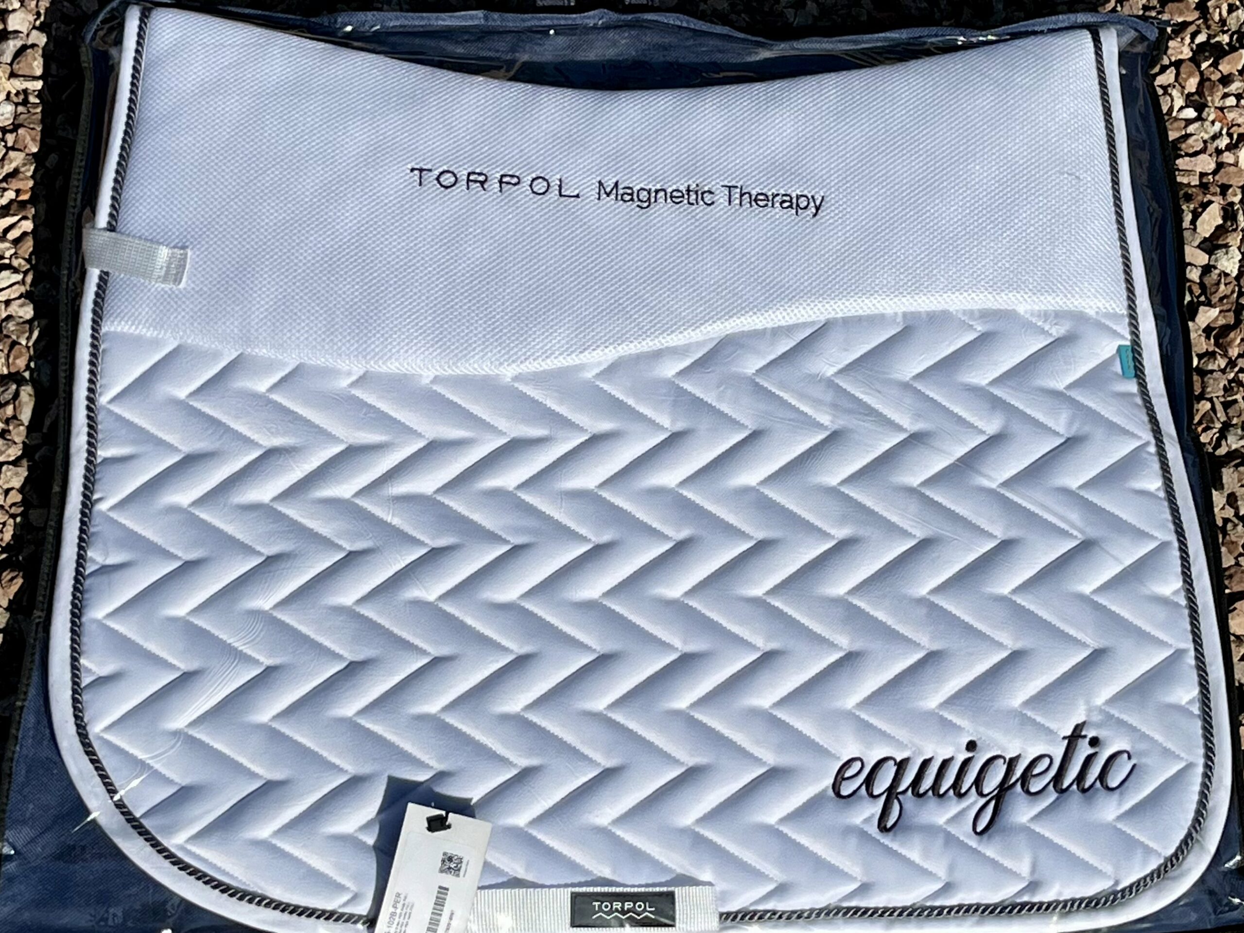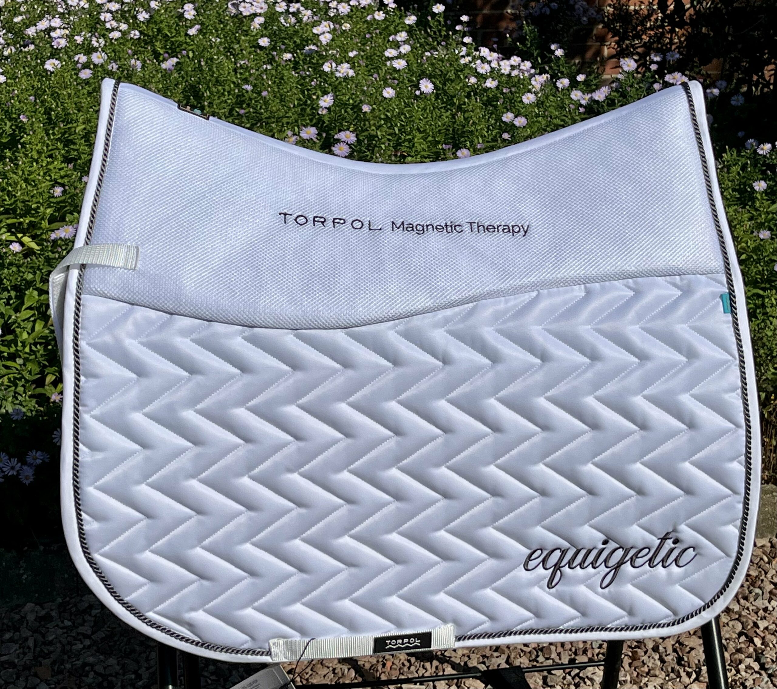 Mit der equigetic Schabracke von Torpol bieten wir erstmalig eine Sattelunterlage die den Ansprüchen einer perfekten Unterstützung für mich entspricht. Das Torpol Magnetfeld System verläuft beidseitig entlang der Wirbelsäule und verbessert die Durchblutung der Tragemuskulatur. Die spezielle Form der Schabracke verhindert Druck auf den Wirbelkanal und das Material ist atmungsaktiv und trocknet gut ab.